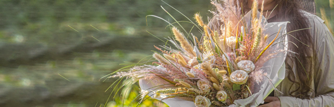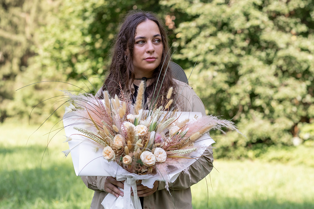 • «Павловский парк»: Нежные садовые цветы в сочетании с травами и сухоцветами, создающие образ собранного в парке гербария.