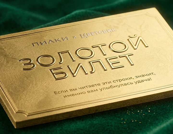 Золотой билет внутри подарочного сертификата