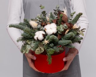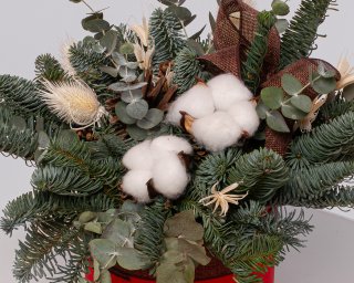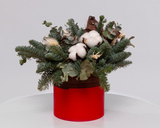 Состав: нобилис, новогодний декор, коробка, оазис.