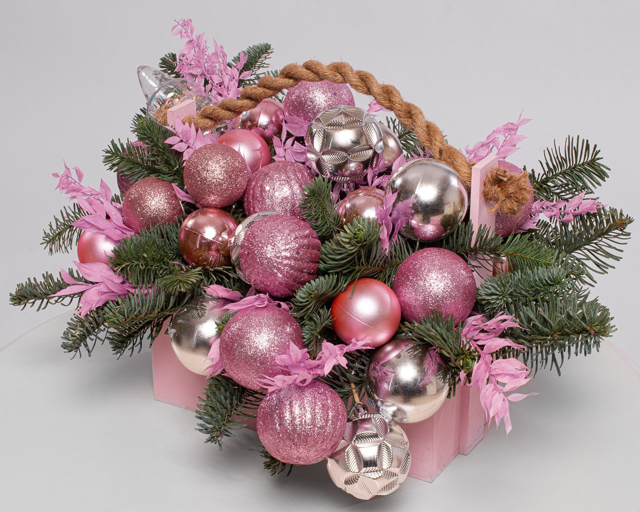 Состав: нобилис, новогодний декор, кашпо, оазис.
