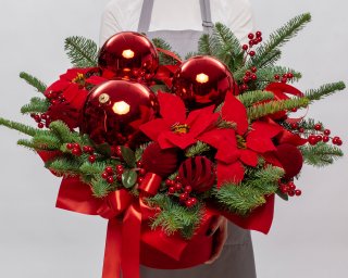 Данная композиция сделана из датской пихты Нобилис и сможет радовать вас более 5 недель. Реальный состав товара может незначительно отличаться от представленного на фото. *Указанные цены действуют при оформлении заказа на сайте.