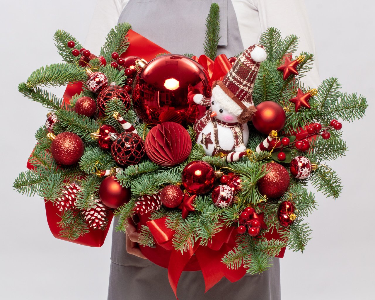 Данная композиция сделана из датской пихты Нобилис и сможет радовать вас более 5 недель. Реальный состав товара может незначительно отличаться от представленного на фото. *Указанные цены действуют при оформлении заказа на сайте.