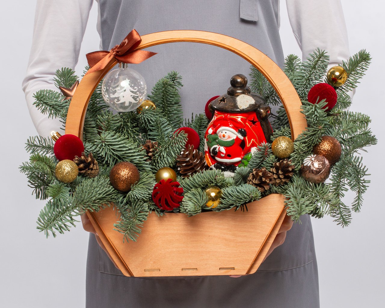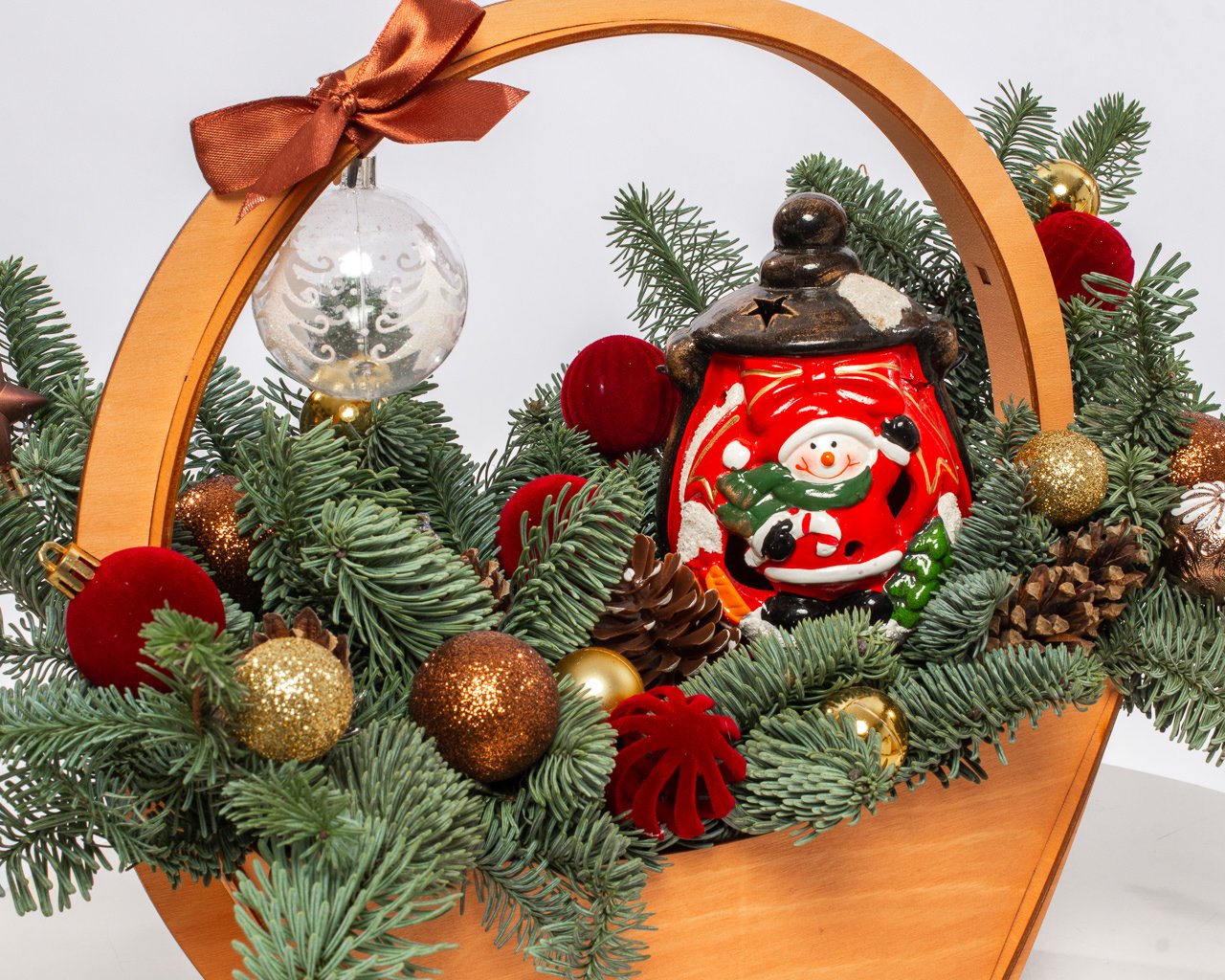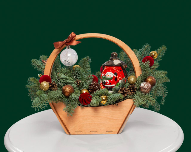 Состав: нобилис, новогодний декор, кашпо, оазис.