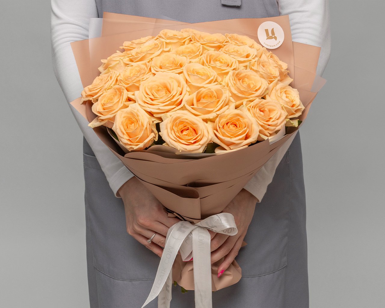 Сеть цветочных магазинов Цветовик предлагает вам букет из 25 кремовой розы 35-40 см (россия) в упаковке по цене 4437 рублей. Покупатели оценивают этот товар на 4.8, что свидетельствует о его качестве и популярности.