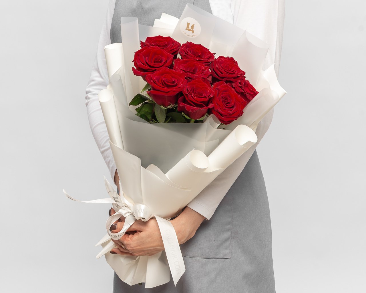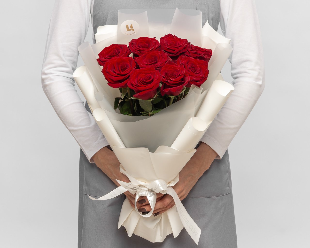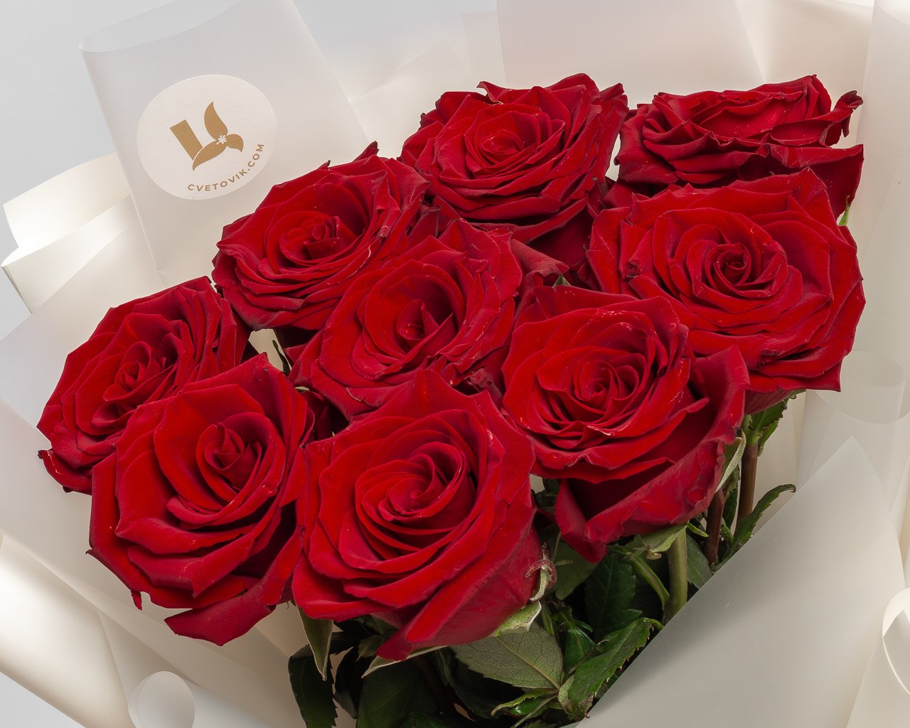 Букет из 9 красных роз премиум 40-50 см (Эквадор) в стильной упаковке