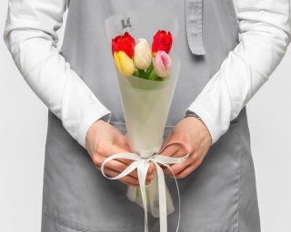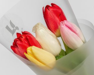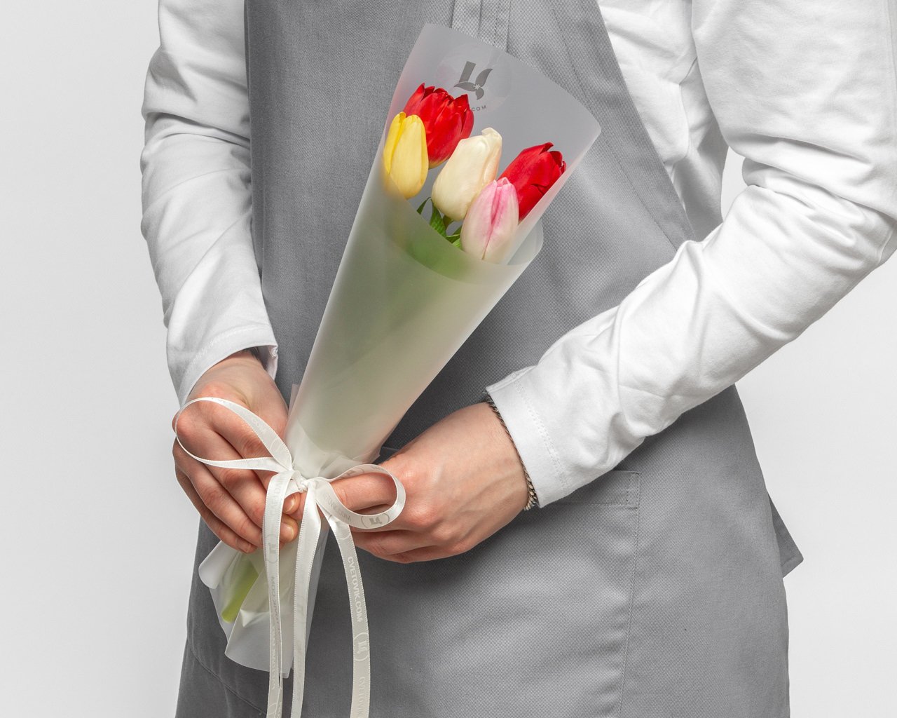 Состав: тюльпан 5 шт, пленка 1 шт, лента атласная 1 шт.