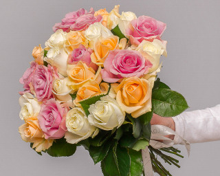 Мы тщательно отбираем свежие цветы и создаём яркие композиции в разных оттенках и размерах. Закажите 25 роз в магазине «Цветовик» и добавьте немного изящества и яркости в свой день!